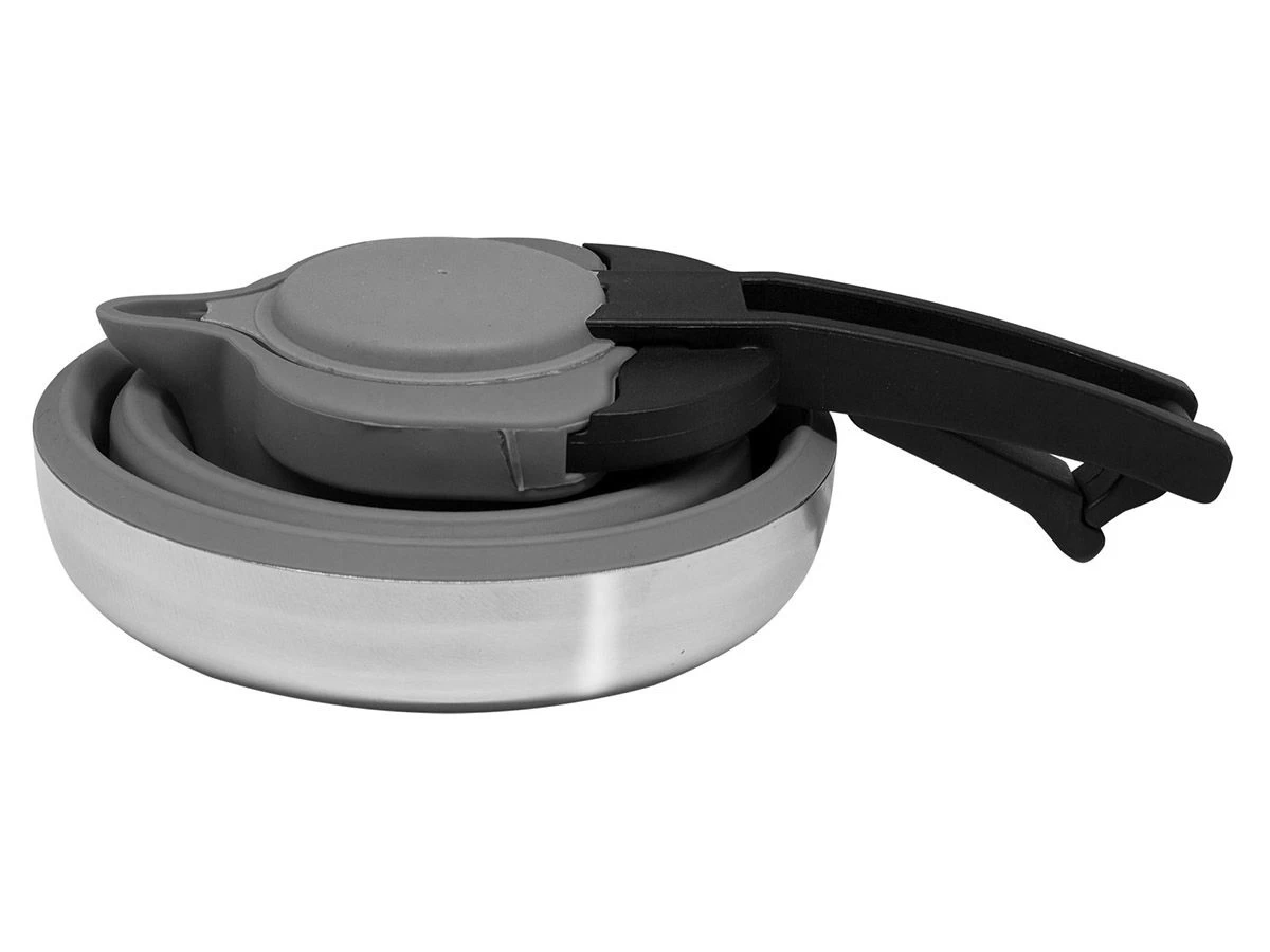 Heb je weinig ruimte, maar wil je wel veel keukenspullen meenemen richting de camping. Kies dan voor opvouwbare artikelen zoals deze waterketel. De waterketel is gemaakt van siliconen met een RVS bodem en is opvouwbaar. Zo heeft hij tijdens gebruik een grote inhoud maar neemt hij weinig ruimte in wanneer je hem wilt opbergen of vervoeren.