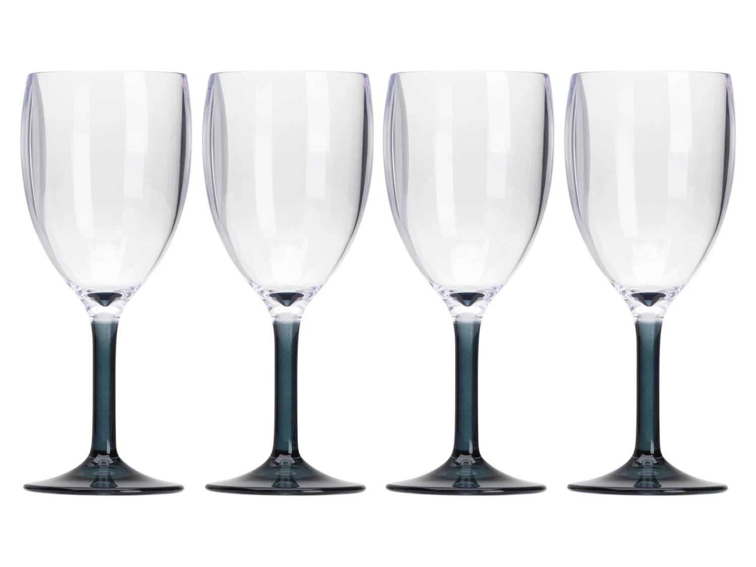 Op de camping genieten van een lekker welverdiend wijntje, maar neem je liever niet je breekbare wijnglazen van thuis mee? Kies dan voor de wijnglazen van Flamefield! Deze glazen zijn gemaakt van acryl en daarmee vrijwel onbreekbaar. De glazen zijn transparant met een mooie grijze kleur in de voet, zo heb je een standaard wijnglas die er toch stijlvol uitziet!
