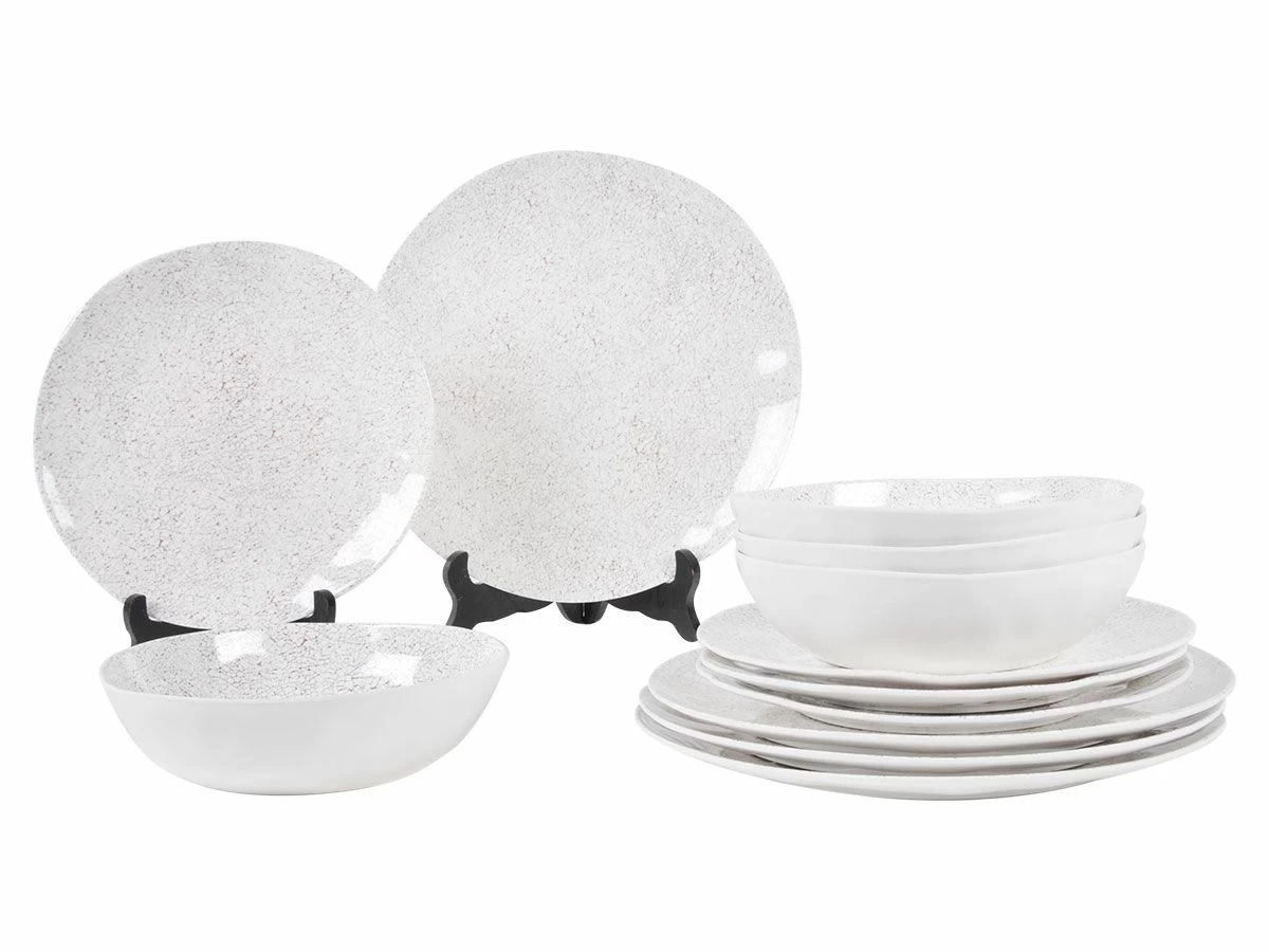 De set is licht van gewicht en makkelijk te stapelen. Het servies is voorzien van een glanzende natuur stenen look voor een natuurlijk effect.