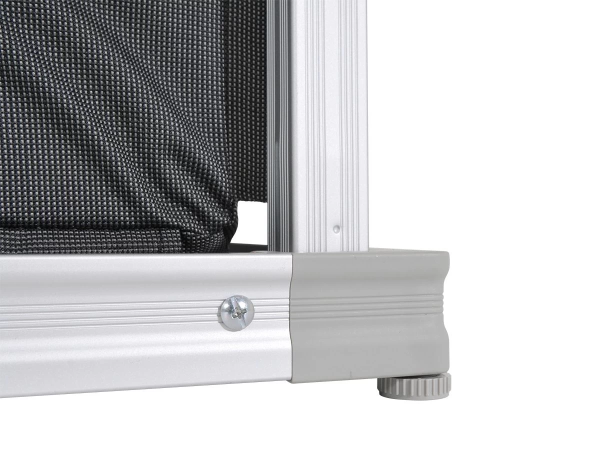 De kast is voorzien van vier stelvoetjes, zodat je de kast altijd waterpas kunt zetten op een ongelijke ondergrond. Het blad is van MDF en afgewerkt met een aluminium rand.