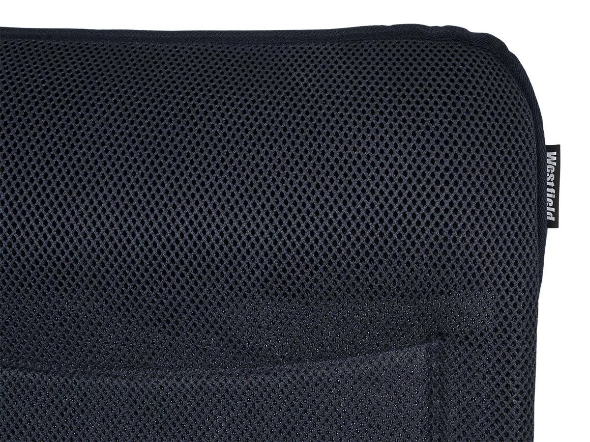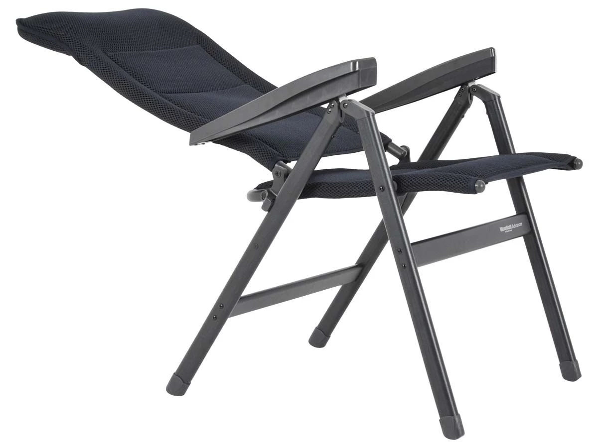 De Advancer heeft een aluminium frame, aluminium scharnieren en een aluminium voering in de armleuning wat de stoel extra stevig maakt. De bekleding is gemaakt van gepolsterd 3D polyester, dit is weerbestendig, duurzaam, ademend en snel drogend. Zeer comfortabel voor kampeervakanties in warme landen. Doordat de stof een hoog ademend vermogen heeft zul je niet snel zweten. En mocht de stoel per ongeluk nat regenen, dan is hij in een korte tijd weer droog en klaar om te gebruiken.